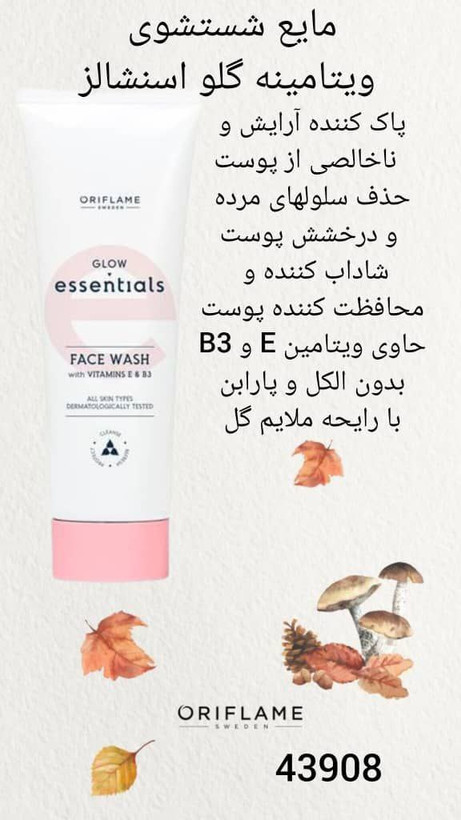 مایع شستشوی صورت روشن کننده و ویتامینه اسنشیالز اوریفلیم سوئد مناسب انواع پوست بجز چرب و جوشدار