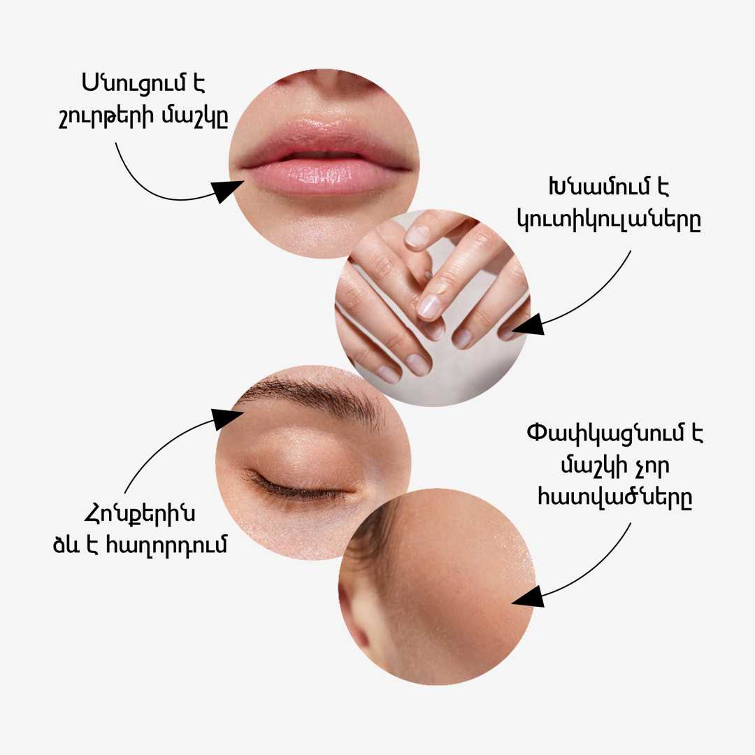 🌸بدلیل داشتن موم عسل طبیعی و روغن دانه های گیاهی و ویتامین Eبرای ترمیم زخم وسوختگی وتبخال و جراحی و بخیه و خشکی چشم و پوست و لب و التهاب پوست عالیه