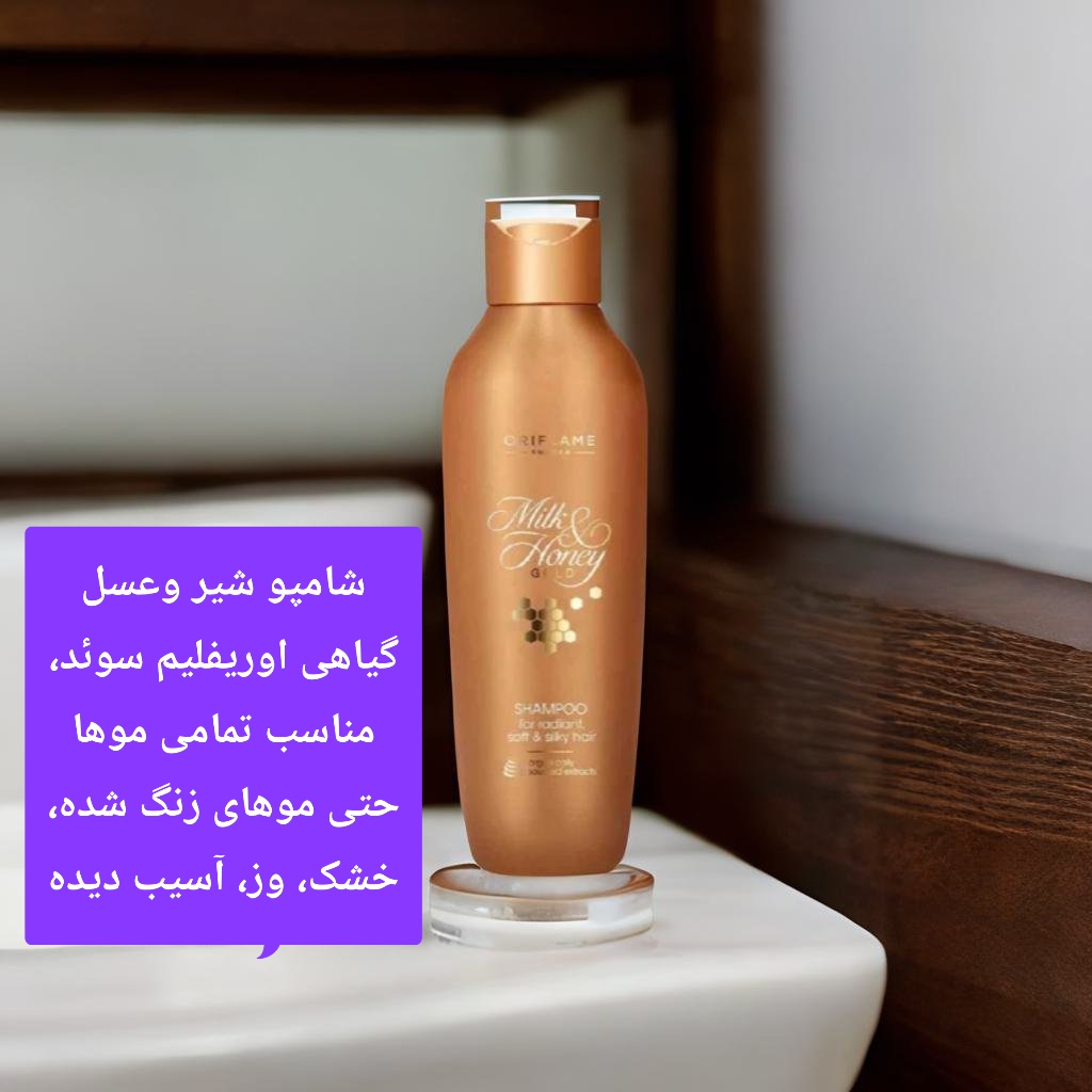 شامپو شیر و عسل گلد اوریفلیم سوئد، تغذیه و آبرسانی عمیق موها 💪👍
